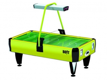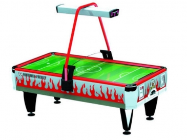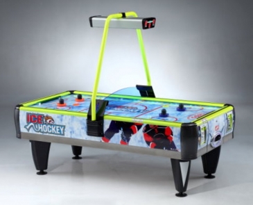 Неоновая подсветка поверхности игрового стола . Новое поколение коммерческих аэрохоккеев. Обновлен и доработан с учетом эксплуатации данного вида аппаратов. . Легкий алюминиевый корпус и прочное покрытие из поликарбоната, устойчивое к механическим воздействиям и царапинам. На поверхности игрового поля нанесена разметка реальной хоккейной площадки . По периметру игрового поля интерактивные светодиодные огни, синяя подсветка местоположения шайбы. Оснащен боковыми датчиками звука хоккейного матча с регулировкой громкости. Конструкцией предусмотрены боковые и центральные щитки безопасности для удержания шайбы на игровом поле. В комплекте 4 шайбы и 2 биты
