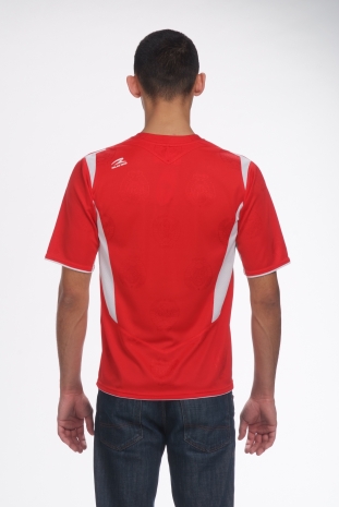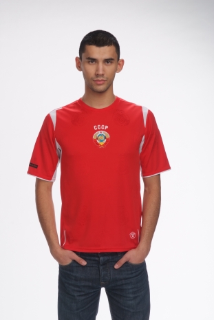 Яркая футболка необычного кроя с контрастными вставками и контрастной окантовкой по рукавам и по низу спины. Футболка изготовлена из текстурированной ткани (жаккарда) с узором герба СССР. Легкий материал с мягким мерцанием произведен на одной из ведущих фабрик в Италии. Футболка дышит, подобно второй коже, прекрасно впитывает влагу и предотвращает перегрев во время занятий спортом или при повседневной носке. Вставки из сетчатой ткани дополнительно регулируют температуру тела.