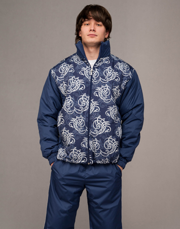 молнии. Регулировка низа куртки по ширине. Брюки на утепленной подкладке. Отделка принтованными вставками. Ткань