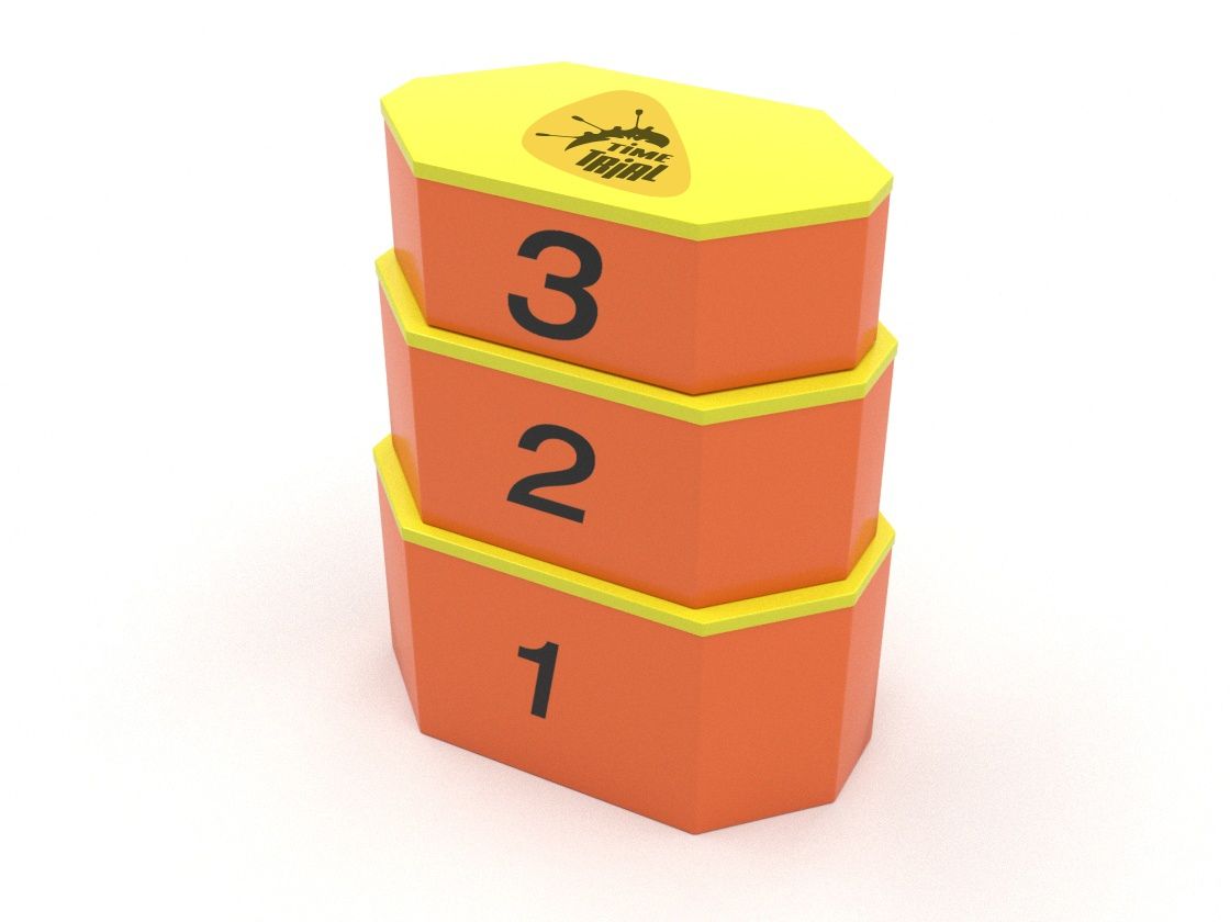 Серия подиумов «Матрешка» от TimeTrial для награждения выполнена из металлического каркаса с облицовкой из листового металла толщиной 1 мм. Окрашивается пьедестал порошковой краской, выберите нужный вам цвет. Верхняя часть конструкции выполнена из влагостойкой фанеры толщиной 15 мм.