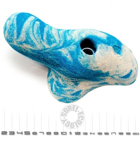 Крепление зацепов к поверхности скалодрома осуществляется при помощи болта М10 длиной от 30 до 70 мм с внутренним шестигранником, выполненного согласно DIN 912, (поставляется в комплекте с зацепом) и закрепленной на скалодроме врезной гайки М10х12,5, выполненной согласно DIN 1624, которая поставляется отдельно.