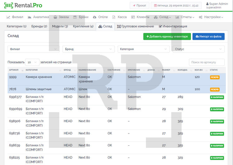 Rental.Pro является профессиональной кроссплатформенной системой автоматизации деятельности пунктов проката и/или инструкторских служб.