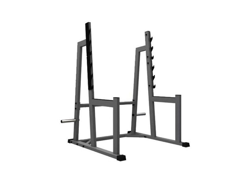 Тренажер имеет 6 положений для штанги и два накопителя для хранения дисков.
