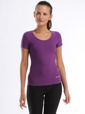 Женская футболка, облегающего силуэта из эластичного трикотажа. Состав: 95% хлопок, 5% эластан.