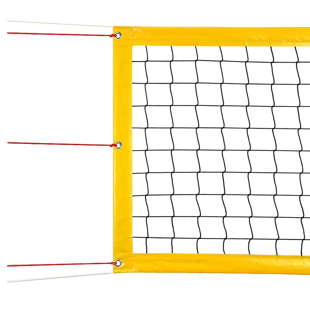Размер 1,0*8,5 м. Подходит для использования как для любительской, так и для профессиональной игры. Ограничительные ленты по периметру ярко жёлтого цвета шириной 7 см изготовлены из синтетической кожи (поливинилхлорида), а полотно сетки из безузлового светостабилизированного полипропилена, что позволяет использовать изделие на открытых площадках в различных погодных условиях без угрозы растяжения и разрушения полотна. Трос в комплект не входит.