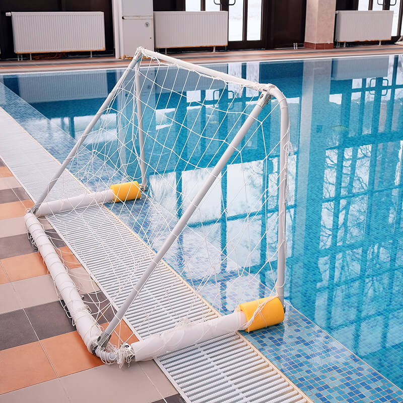 Стандартный размер сетки для ворот водного поло 0,9*3,0*1,0 м. Оптимальный диаметр нити – 2,5 мм. Сетка будет прочной, но легкой и быстросохнущей. Полипропилен, используемый для производства, является нетоксичным, долговечным материалом.
