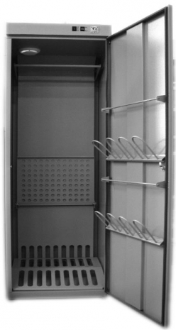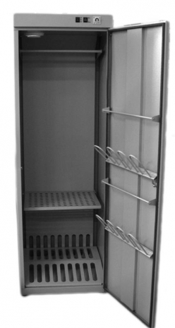 перфорированные полки, на которые можно положить предметы одежды и снаряжения, а также поставить обувь, штанга для навешивания на неё одежды на плечиках, что позволяет одежде в процессе сушки не мяться; на дверях устанавливаются кронштейны для просушки головных уборов или перчаток.